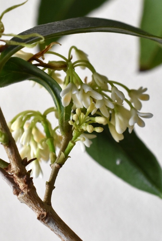 ほのかに香るモクセイの真っ白で小さな花です